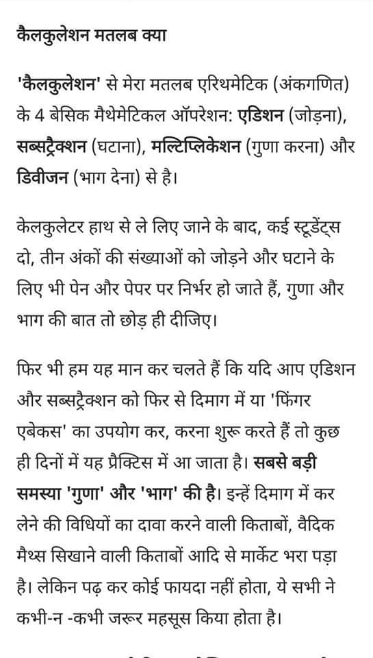 चाहे आप किसी भी बैकग्राउंड से आते हो:साईंस,इंजीनियरिंग, कामर्स या बायोलॉजी:कॉम्पिटिटिव एग्जाम की तैयारी मे सबसे बड़ी समस्या, मैथ्स के कांसेप्टस को समझने से भी बड़ी, ‘केलकुलेशन’ करना हो जाती है ।