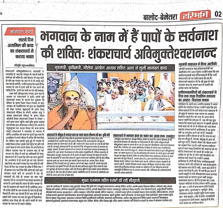 द्विपीठाधीश्वर शंकराचार्य जी की कथा का श्रवण पान इस छत्तीसगढ़ की जनता ने किया। वैसेही आपकी वाणी ओत और प्रस्तुतीकरण को भक्तों ने महसूस किया है। पता नही चला कि द्वि पीठाधीश्वर भगवान के कथा का रसपान हम कर रहें है या ज्योतिष पीठाधीश्वर भगवान के, इसमें अंतर कर पाना मुश्किल है। 07 दिन लगातार आखरी परीक्षित मोक्ष की कथा सुनने के बाद साक्षात ही नारायण के दर्शन शंकराचार्य के रूप में हुआ है।